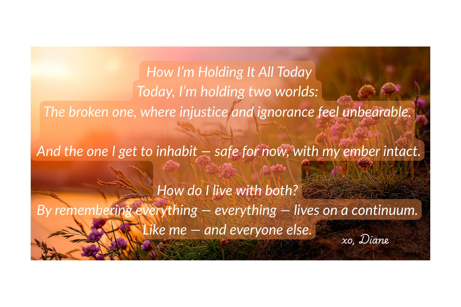 I don’t want to scorch the earth on reentry — only to rebuild from rubble and wonder where my ember went. The one I carry like I invented fire.
