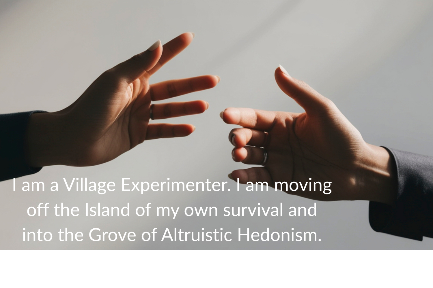 I am not looking for a "fix." I am a Village Experimenter. I am moving off the Island of my own survival and into the Grove of Altruistic Hedonism. I’m reclaiming the swearing, the microdosing, and the fierce pursuit of pleasure—not to bypass the reality of our broken world, but to endure it.